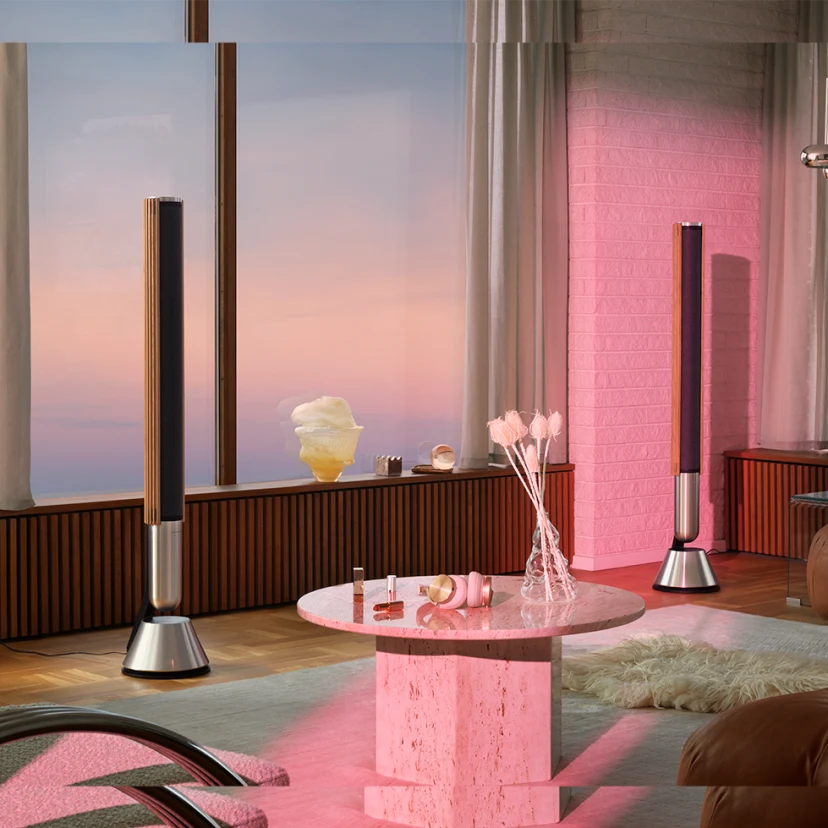 Don’t be fooled by the looks. Press play and move through huge stereo soundscapes with Beolab 28. Years of acoustic excellence have led to this moment: hear every boom, breath and beat with a new level of clarity and depth. And when it comes to bass, it hits. Hard. Studio-grade quality, cinema-level goosebumps.