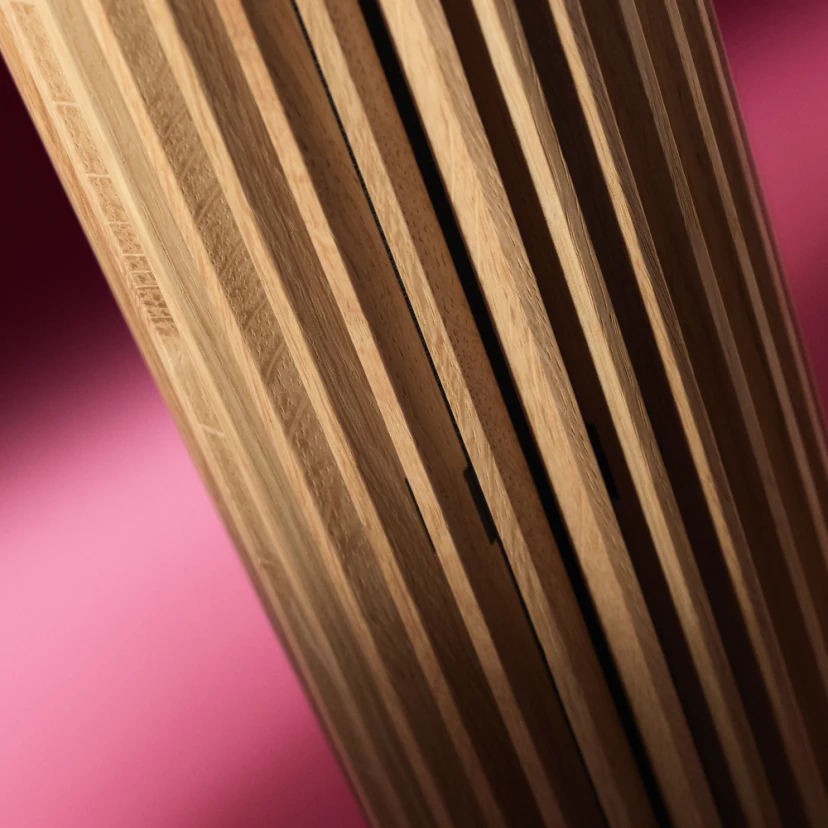 Inside Denmark’s Factory 5, Beolab 28 is born. Each aluminium piece is milled by metalworking maestros. Every speaker is wrapped in tactile fabric designed for acoustics. Then the final touch: oak from suppliers we’ve worked with for decades. Almost a century of knowledge goes into the craft – so you know that for years to come, it will still be standing tall.