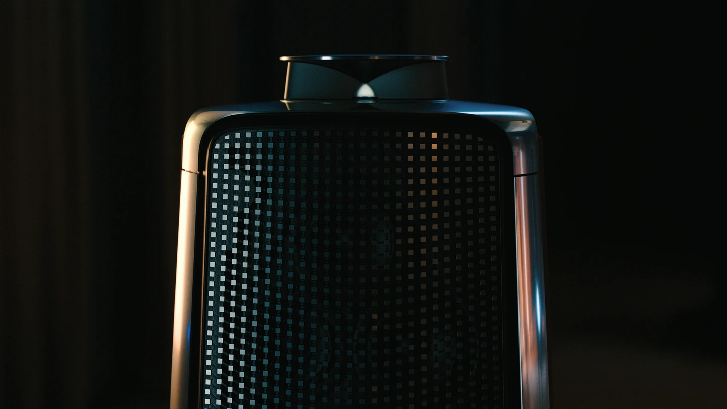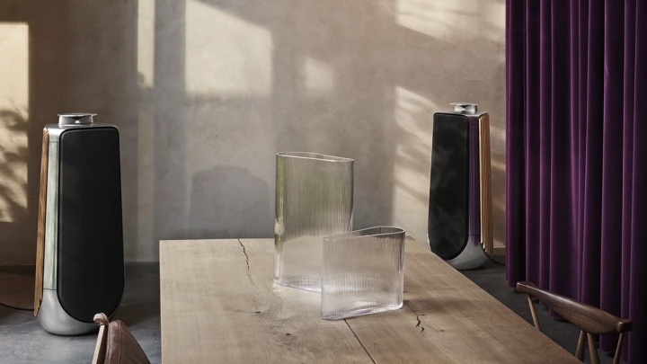 With an eye-catching geometric design, Beolab 50 embraces natural colours and contours to create a beautiful blend of contemporary styles. The Acoustic Lens majestically ascends before performing, creating a magical moment that sets the stage for an extraordinary listening experience.